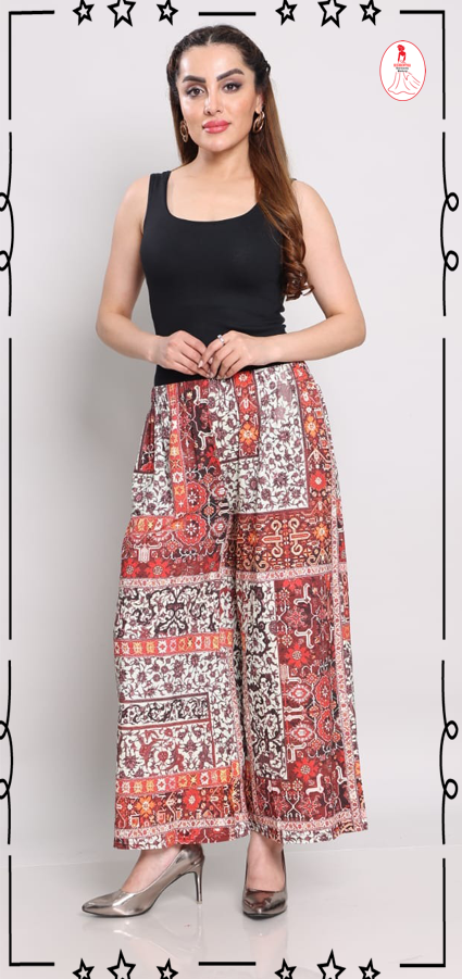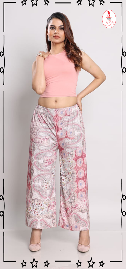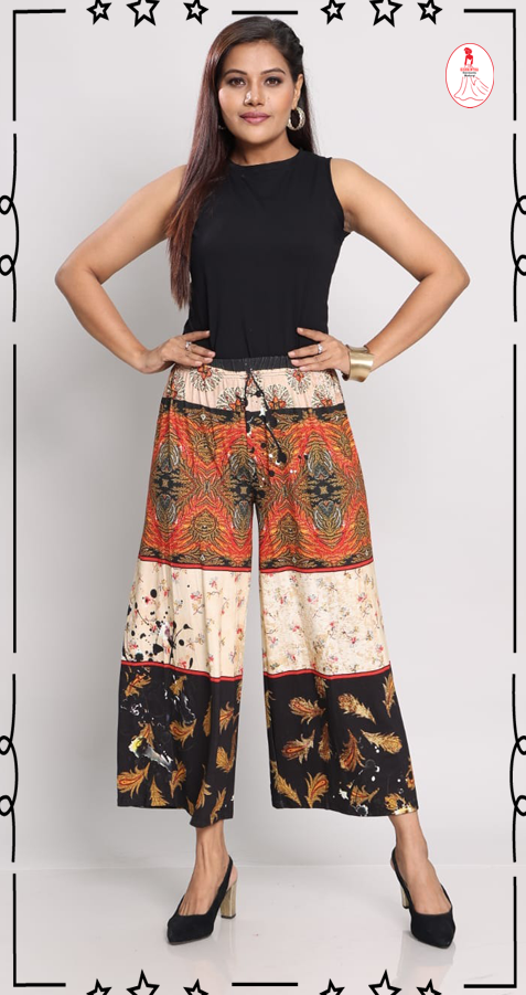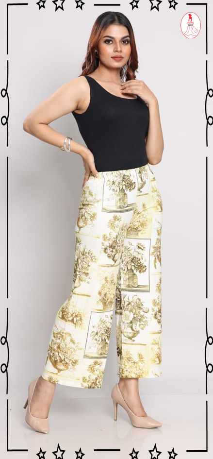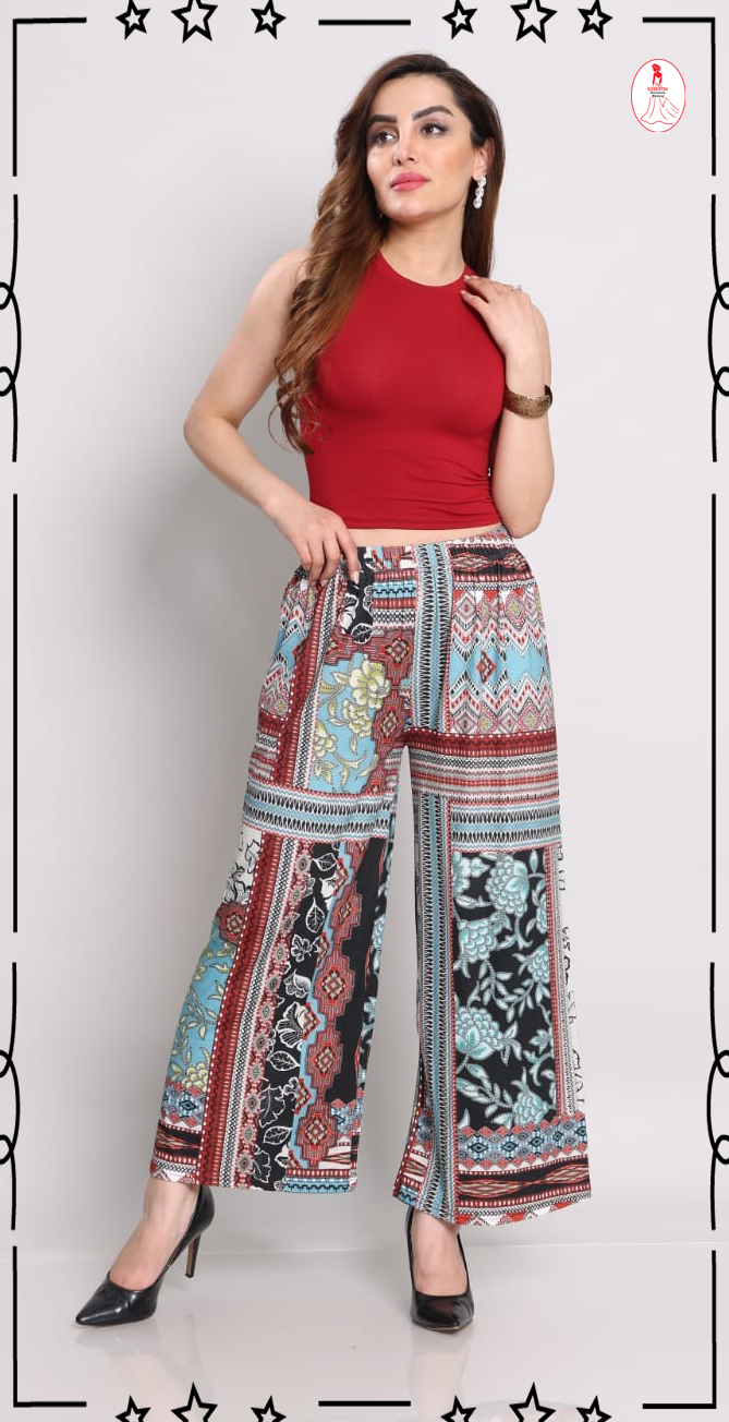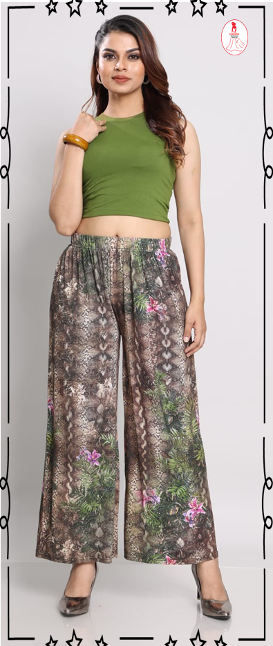 Elegent Color Digital Printed Womens High Waist Wide Leg Long Palazzo Pants