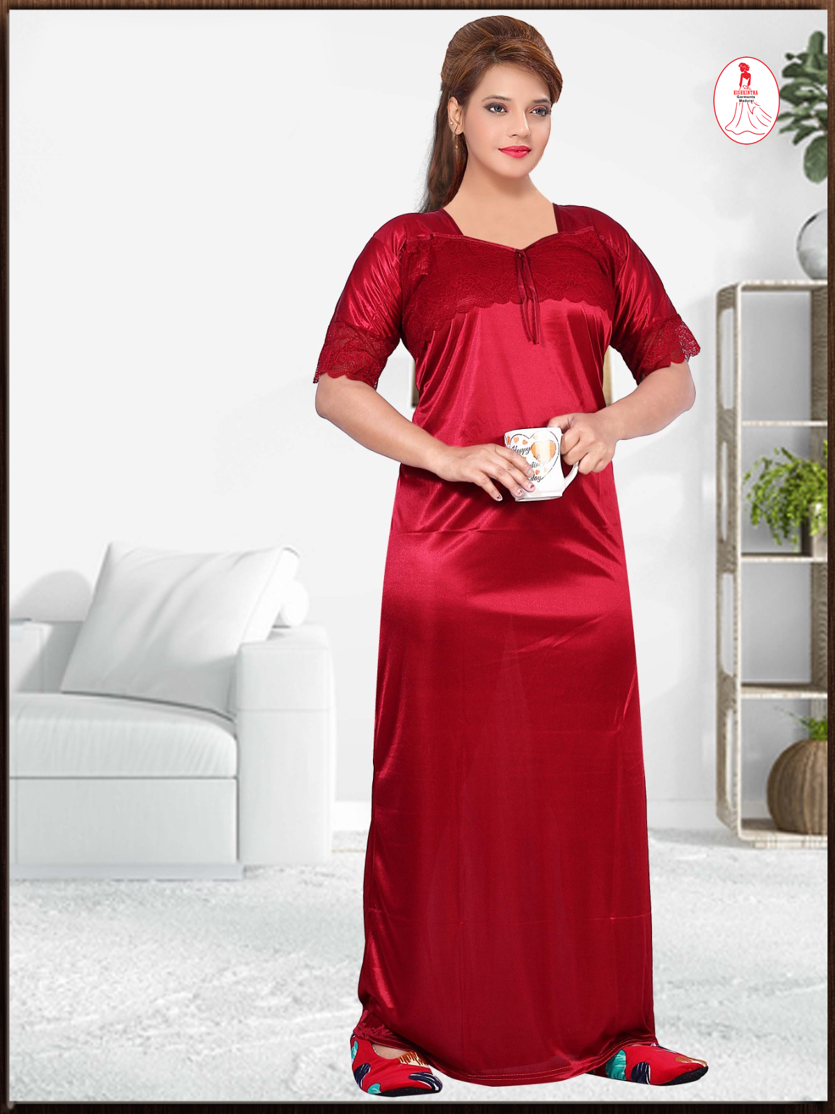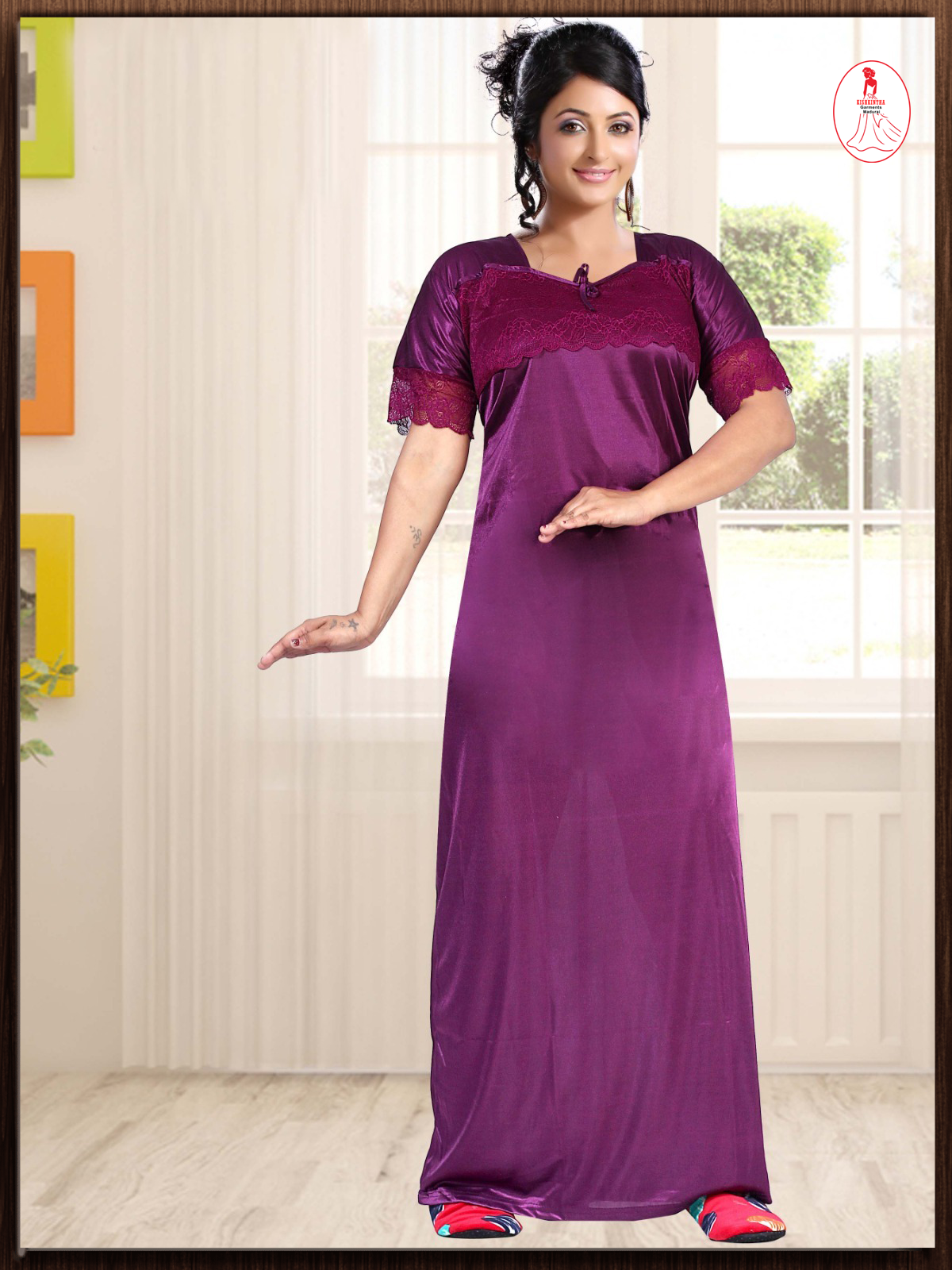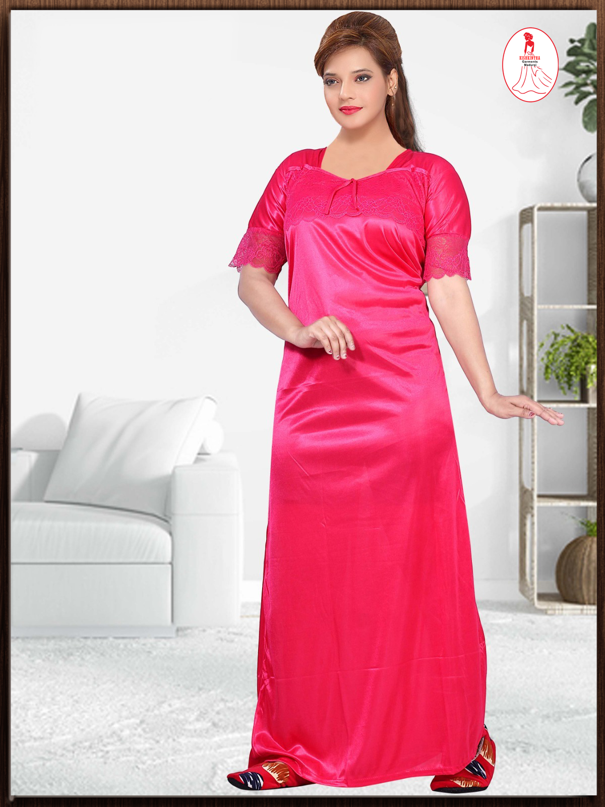 Solid plain with smooth and silky touch and attractive lace work on it