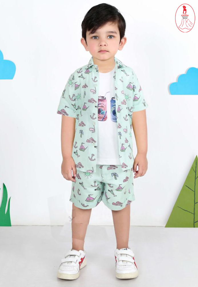 Pista Green with White Casual Legent Outfits for Little Boys Baby for Trending Fashion wear